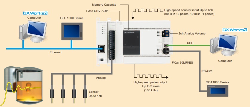 Az FX3S PLC sorozat a Mitsubishi FX3 családjának legújabb tajga. Az „S” egy helytakarékos és költség hatékony, maximum 30 I/O pontos vezérlési megoldás. A csökkentett bővíthetőségű, ám elem és karbantartás mentes vezérlő, tökéletesen alkalmazható olyan helyeken, ahol a rendszeres felügyeletre nincs lehetőség.