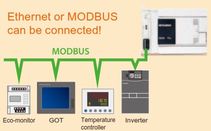 Ethernet, Modbus és Mitsubishi Inverter protocol
